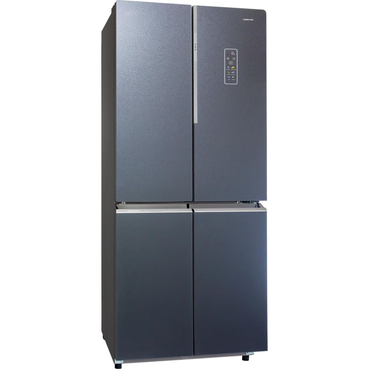 Холодильник HIBERG RFQ-590G GT с общим объемом 510 литров, автоматической системой размораживания, цветным дисплеем, сенсорным управлением и рядом полезных функций и технологий.