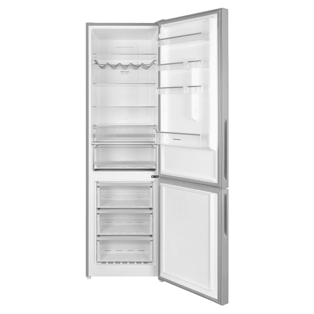 Ключевые преимущества этой модели — полный NoFrost в холодильном и морозильном отделениях, инверторный компрессор, класс энергоэффективности A++, низкий уровень шума 37 дБ. Вместительный полезный объём и удобные аксессуары вроде решётки для бутылок и формочки для льда делают MAUNFELD MFF200NFS Inverter практичным выбором для семьи.