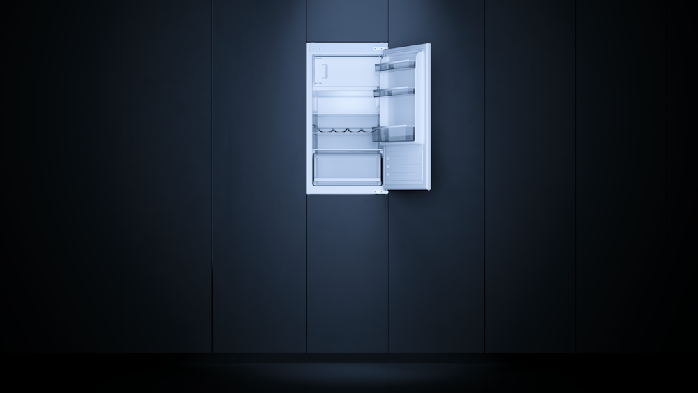 Встраиваемый холодильник Kuppersbusch FK 3305.0i с внутренней морозильной камерой — идеальное решение для небольших кухонь, где важны каждая деталь и каждый сантиметр пространства.