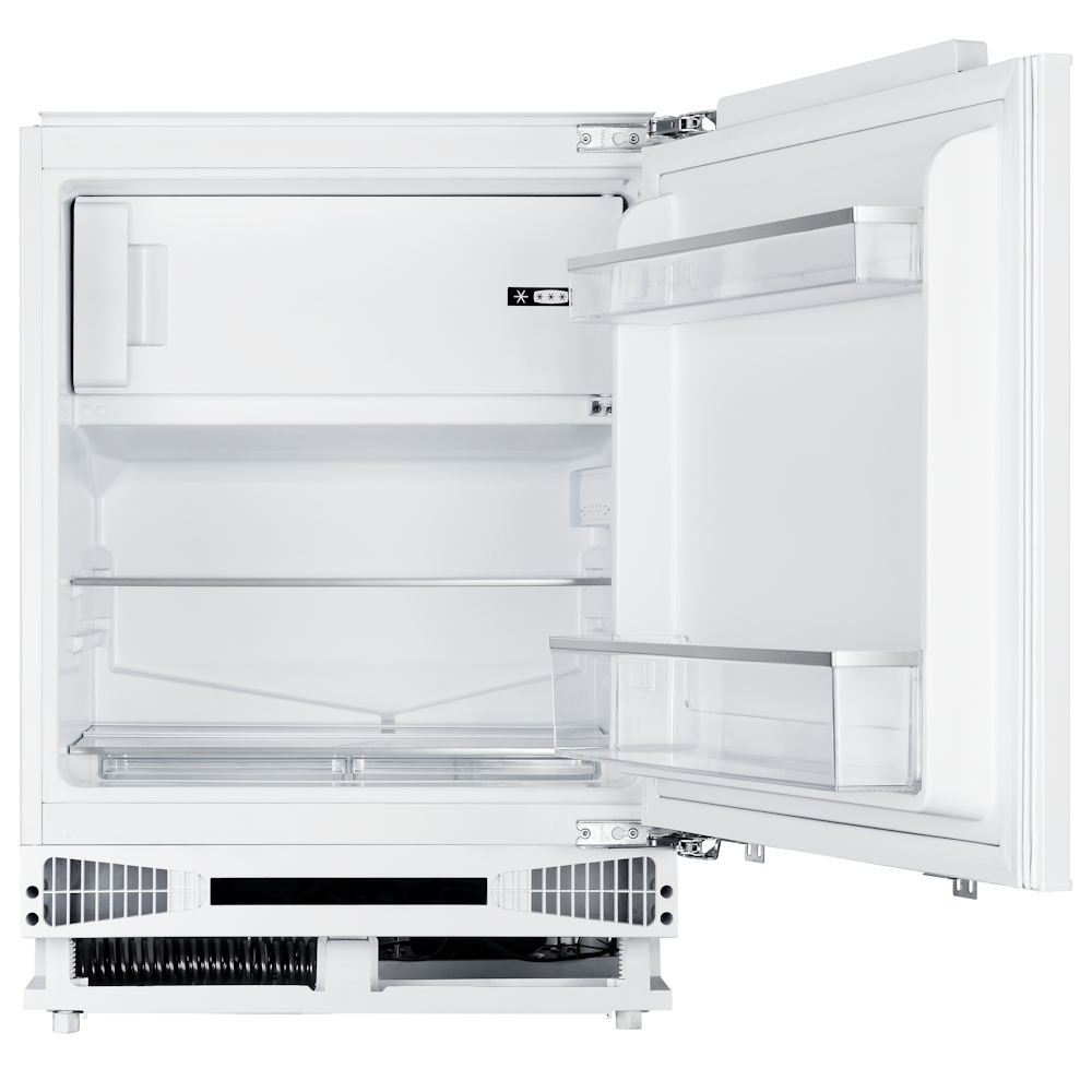 При компактных габаритах (81,8–86,8×59,6×55 см) модель предлагает продуманную организацию хранения: холодильная камера на 95 л и морозильная на 16 л. Жёсткое крепление фасада обеспечивает безупречную интеграцию в кухонный гарнитур, а уровень шума всего 40 дБ делает работу практически бесшумной.